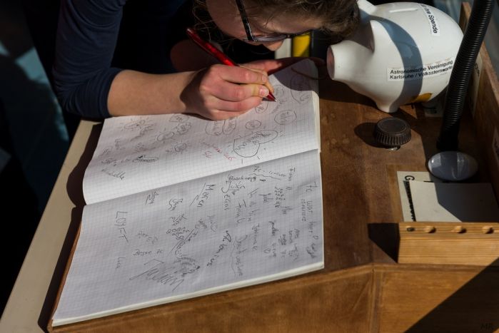 Jedermann und -frau ist willkommen, auch mit Kindern. Bitte beachten Sie, dass aus Sicherheitsgründen die Anzahl der Besucher beschränkt ist. Deshalb müssen Sie sich vorab anmelden. Sollten Sie Fragen dazu haben, oder wollen Sie die Sternwarte als Gruppe besuchen, dann kontaktieren Sie uns bitte über das Kontaktformular.