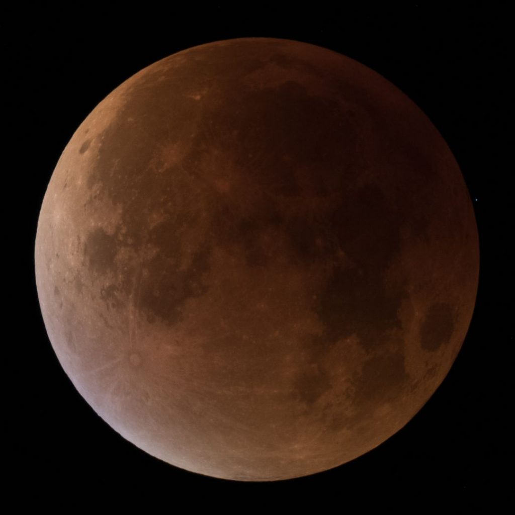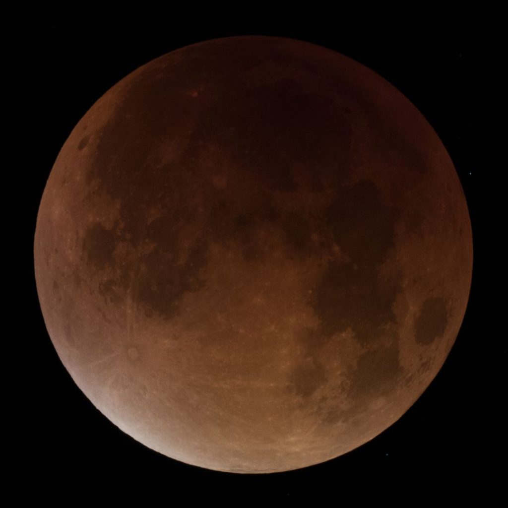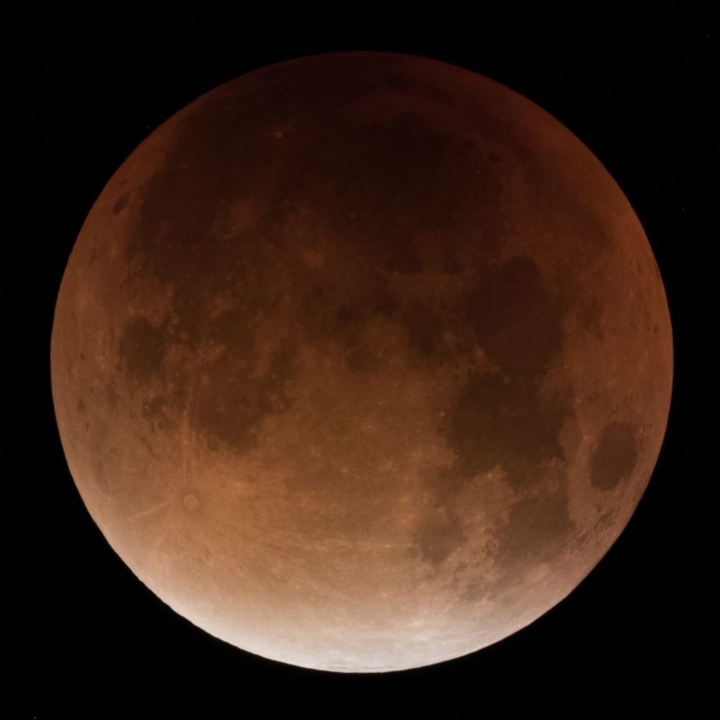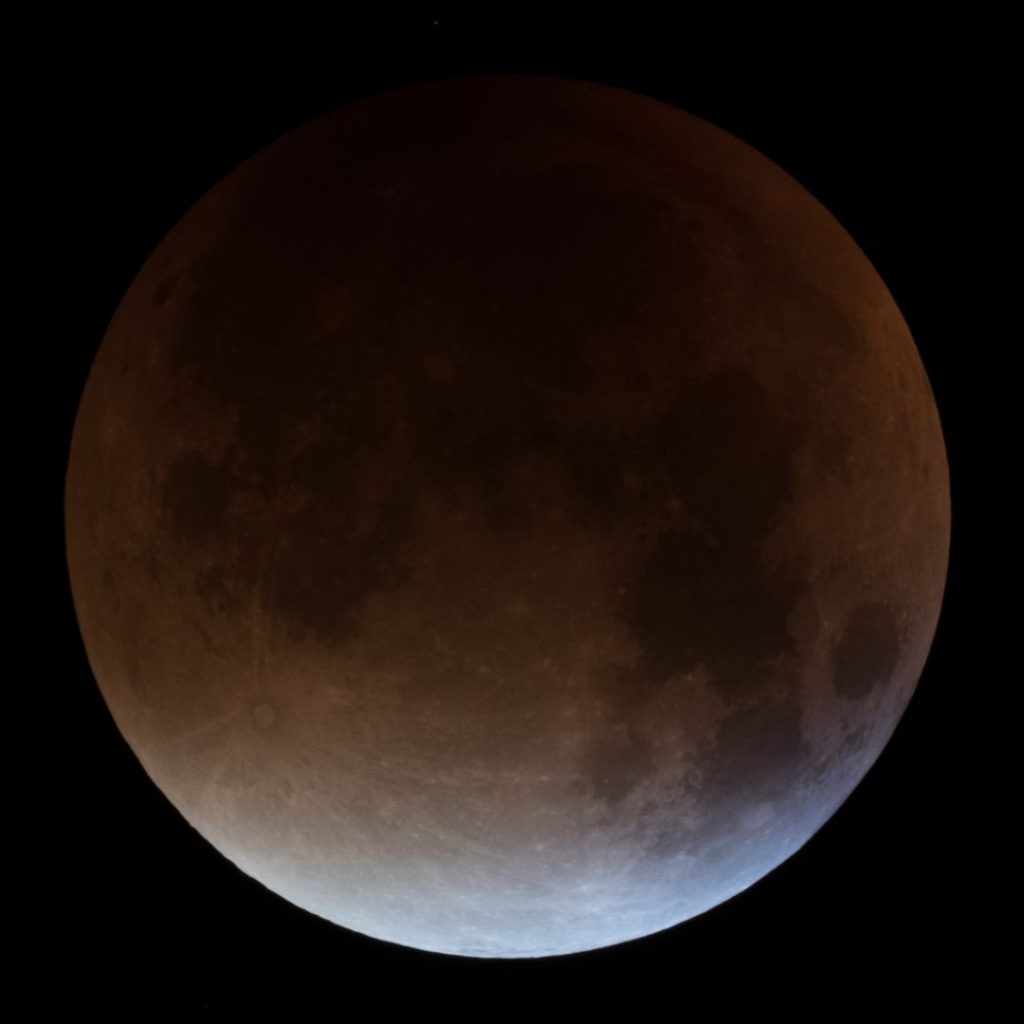 Totalitätsphase von 4:15 Uhr bis 5:30 Uhr. Das erste Bild wurde knapper belichtet damit der bläuliche Farbschimmer besser erkennbar ist. Die Bilder am Ende geben den visuellen Eindruck wieder, wie der Mond innerhalb weniger Minuten wieder gleißend hell wurde.
