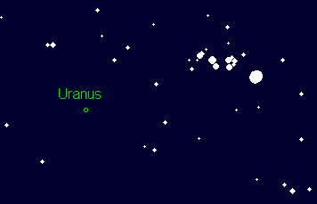 beschleunigt seine rückläufige Bewegung im Sternbild Stier. Der 5.6m helle Planet kann in einem Fernglas etwa 4° südlich der Plejaden aufgefunden werden. Bei exzellenten Bedingungen ist der grünliche Planet sogar mit dem bloßen Auge erkennbar. Er verlagert seine Aufgänge von 20:45 MESZ am 1. Oktober auf 17:45 MEZ am letzten Oktobertag. Eine Stunde danach ist er im Fernglas gut sichtbar. Den Mond findet man am Morgen des 10. Oktober 5.5° rechts von Uranus. Im Teleskop präsentiert Uranus ab etwa 100x ein 3.8“ großes Planetenscheibchen, auf dem allerdings keine Details erkennbar sind. Mit größeren Instrumenten können die beiden hellsten Monde Titania (13.8m in etwa 30“ Distanz vom Planeten) und Oberon (14.0m / 40“) ausgemacht werden.
