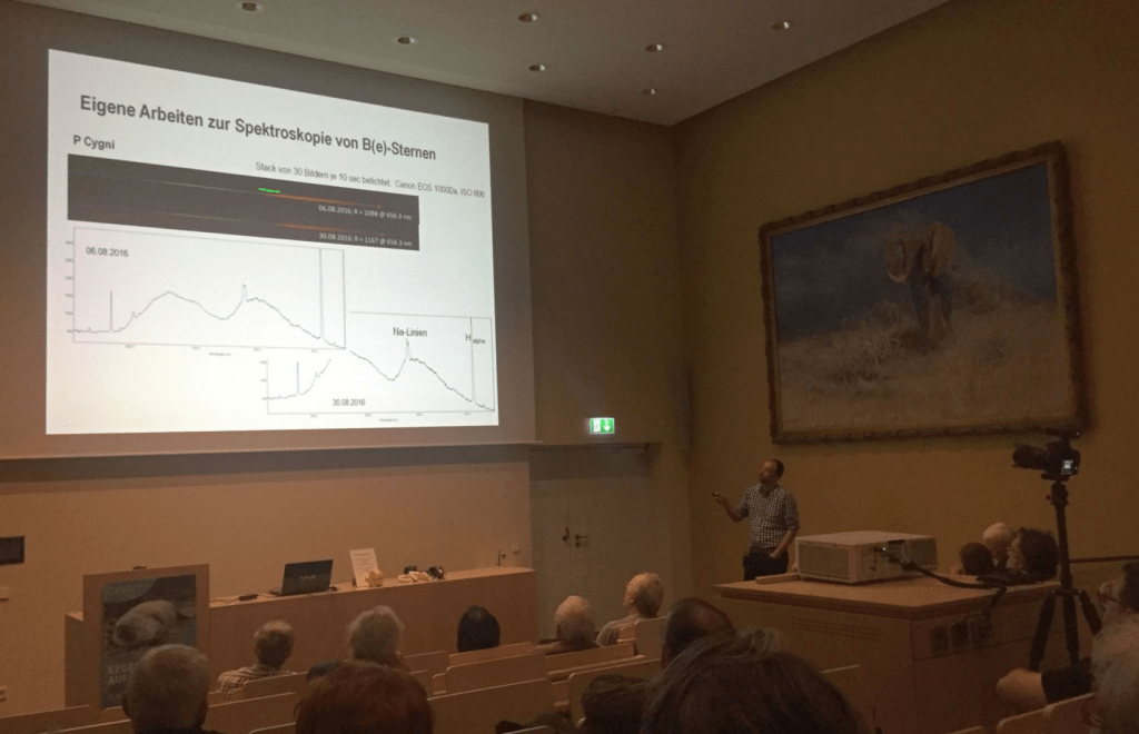 Dominic Freudenmann wird in seinem Vortrag über solche eigene spektroskopische Beobachtungen an einer speziellen Klasse von Sternen berichten. Für aktive Beobachter sicherlich ein spannendes Thema.