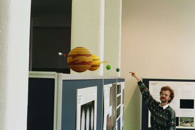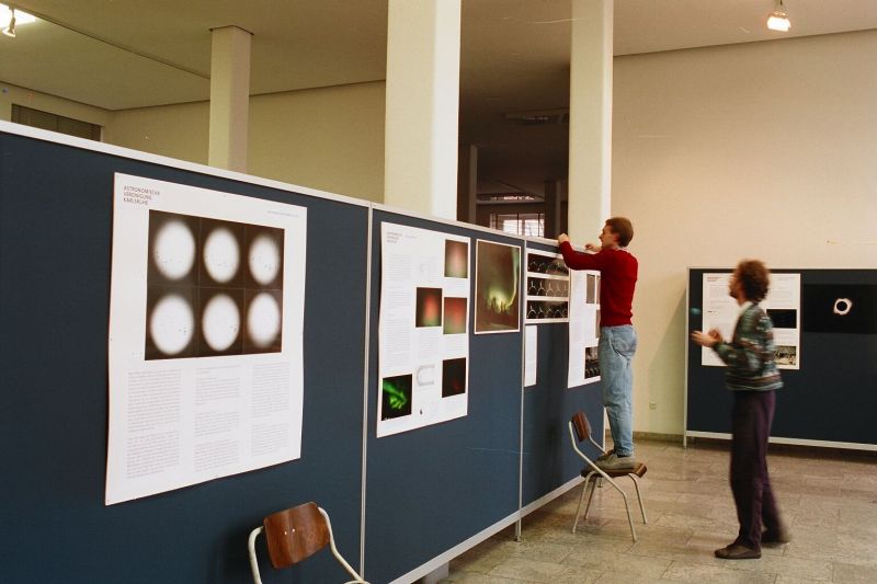 Schon vor der Wende war der Versuch gemacht worden, mit astronomischen Einrichtungen der Karlsruher Partnerstadt Halle Verbindung aufzunehmen, der jedoch, dem damaligen DDR-Stil entsprechend, im Unverbindlichen steckenblieb. Nach der Wende 1990 wurde die Beziehung intensiviert und die AVKA richtete eine Poster-Ausstellung über die Amateurastronomie im dortigen Raumfahrt-Planetarium aus. Damals bestand die Befürchtung, dass die Einrichtung aus Geldmangel aber auch aus mangelndem Interesse an der nun nicht mehr „verordneten“ Astronomie geschlossen würde. Erheblich erweitert wurde diese Ausstellung 1991/92 auch im Karlsruher Naturkundemuseum gezeigt.