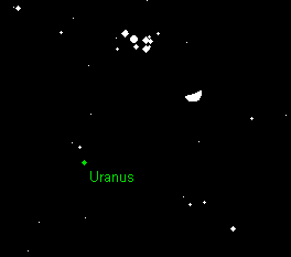 wird am 5. Februar stationär und bewegt sich anschließend in östlicher Richtung durch den Westteil des Sternbilds Stier, nur 5° südlich der Plejaden. Der 5.7m helle Planet geht zu Monatsbeginn gegen 3:00 MEZ, am Monatsende gegen 1:15 MEZ unter, und ist im Fernglas ein einfaches Objekt. Jeweils eine Stunde zuvor wird Uranus in den horizontnahen Dunstschichten unsichtbar. Der Zeitpunkt der Kulmination, die jeweils in großer Höhe stattfindet, verschiebt sich von 19:15 MEZ auf 17:30 MEZ. Zu Monatsbeginn ist es noch möglich, den Planeten von einem dunklen Standort aus sogar mit dem bloßen Auge auszumachen. Kurz vor seinem Untergang am 24. Februar (kurz nach Mitternacht) findet man den Mond 5° rechts oberhalb des Planeten. Im Teleskop präsentiert Uranus ein 3.7“ großes, grünliches Scheibchen, das ab etwa 100x erkennbar wird, auf dem aber keine Details erkennbar sind. Mit größeren Instrumenten können die zwei hellsten Monde Titania (13.9m) und Oberon (14.1m) in Abständen von etwa 30“ bzw. 40“ ausgemacht werden.